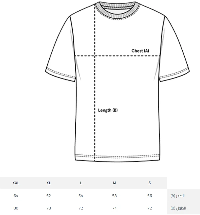 💡 نصيحة! قم بقياس أحد التيشيرتات لديك وقارنها بمخطط المقاسات الخاص بنا للحصول على المقاس المثالي.