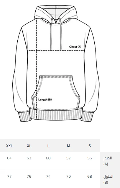 💡 نصيحة! قم بقياس أحد الهوديز لديك وقارنه بمخطط المقاسات الخاص بنا لضمان المقاس الواسع المثالي لك.